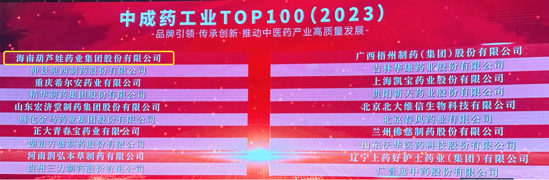 会上,还发布了“2023中成药工业TOP100”榜单,yd12399云顶集团药业集团荣耀上榜。